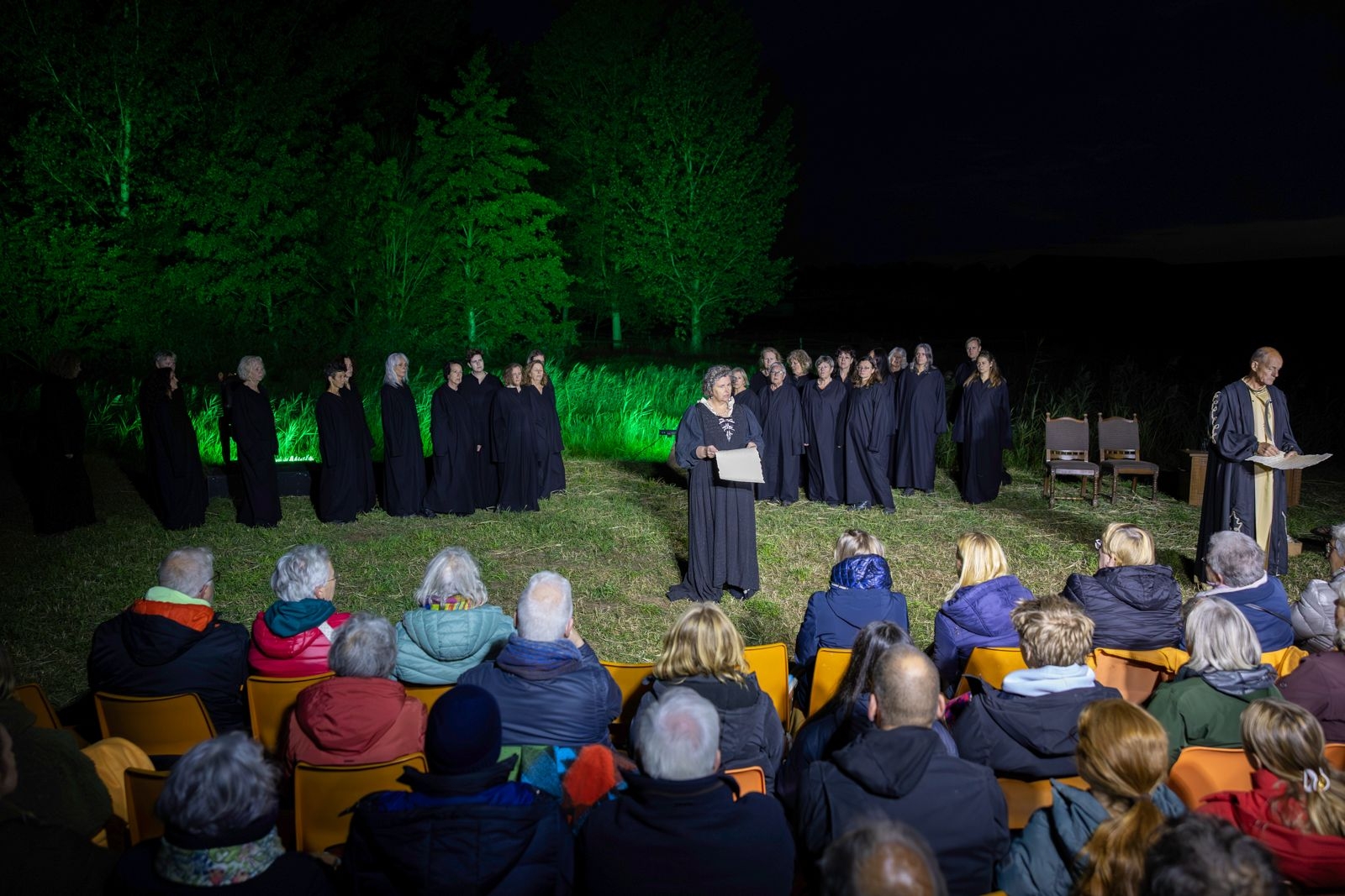 Met 12 regionale, ervaren tekstspelers, 26 enthousiaste figuranten, knap gebruik van lichteffecten, geluidsfragmenten en optimale inzet van unieke, natuurlijke speellocaties schetsen we een levendig sfeerbeeld van de middeleeuwen en de laatste dagen van de heksenvervolgingen in de Peel.